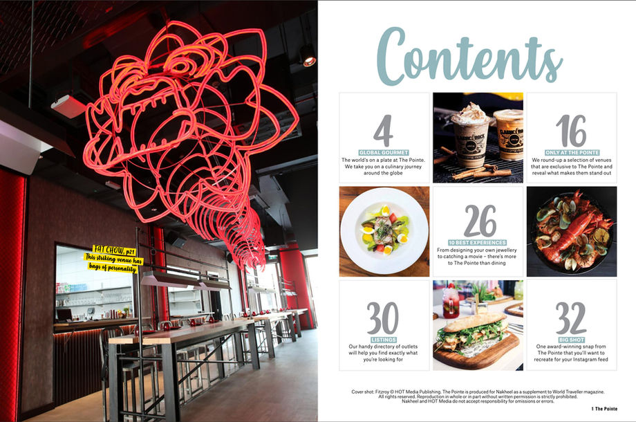 Brief: Create a brochure for The Pointe, Dubai’s iconic new waterfront destination offering unrivalled dining, entertainment and leisure. Set at the tip of the world-famous Palm Jumeirah, across the bay from Atlantis The Palm, The Pointe is a scenic, relaxing arena with more than 80 restaurants, shops and attractions including dining, retail and entertainment outlets. Its centrepiece is a spectacular fountain display which will enthral visitors with stunning shows that can be viewed from The Pointe’s wide range of waterfront dining spots.
